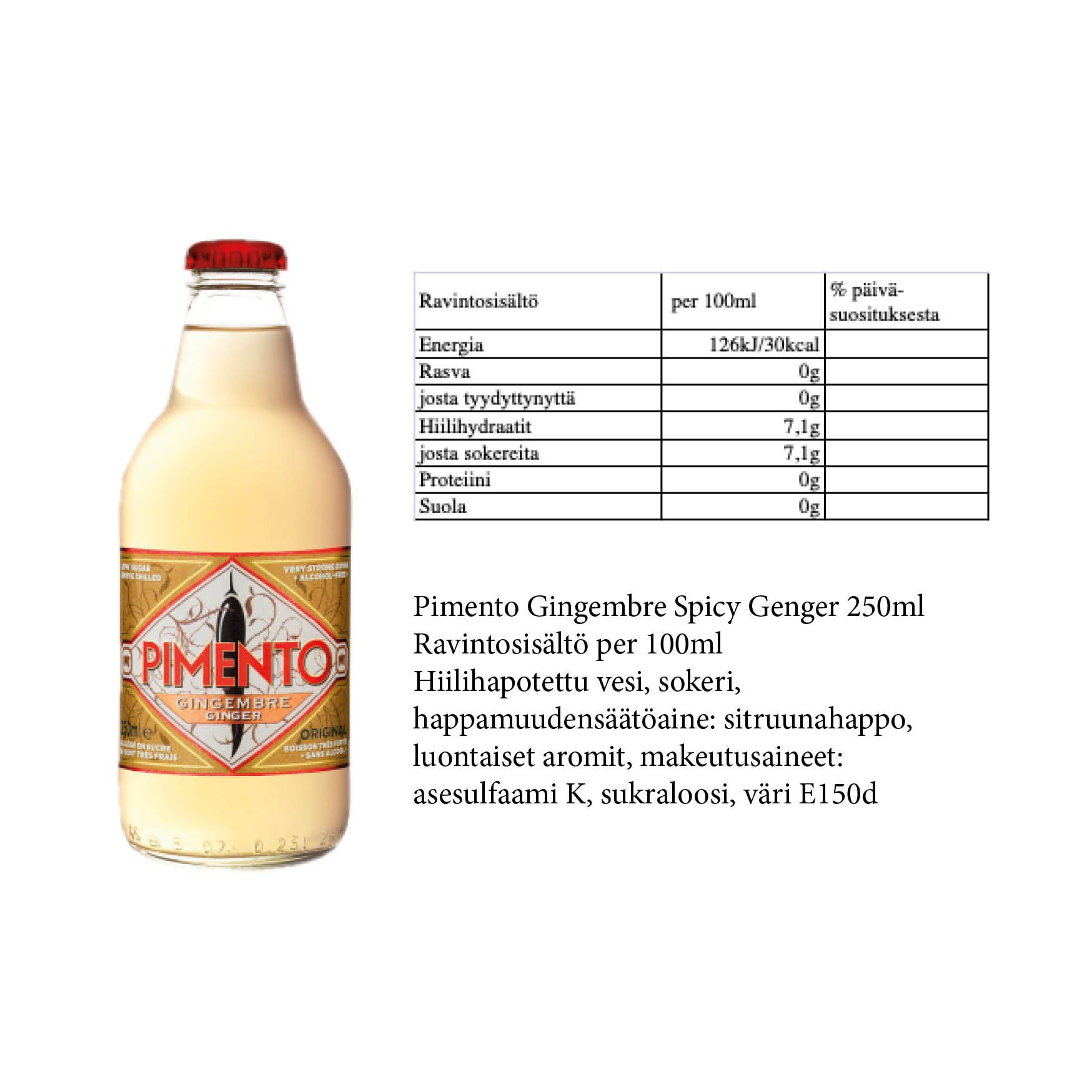 Ainutlaatuinen ranskalainen virvoitusjuoma, jossa yhdistyvät inkivääri, tonic ja chili Spicy Ginger Drink. Luontaisia makuja (inkivääri, tonic, chili, limetti, pomeranssi, katkero ja oregano) 30% vähemmän sokeria makeuttajana. Käytetty sokerin lisäksi asesulfaami K:ta ja sukraloosia pehmentämään voimakkaita makuja.